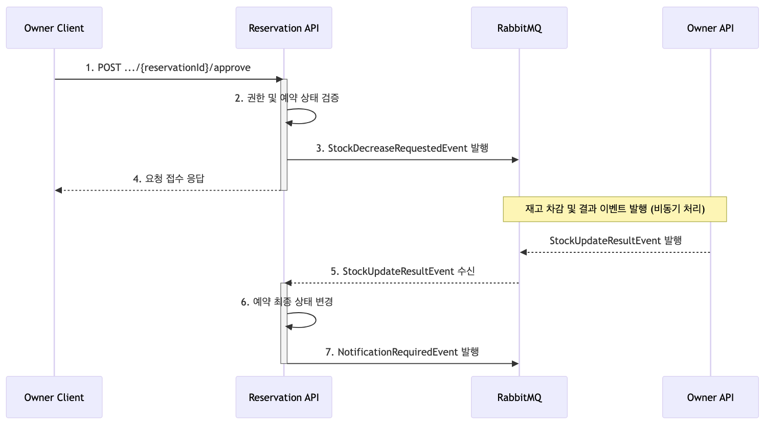 StockDecreaseRequestedEvent | 점주가 예약을 승인할 때 재고 차감 요청 | owner-api |