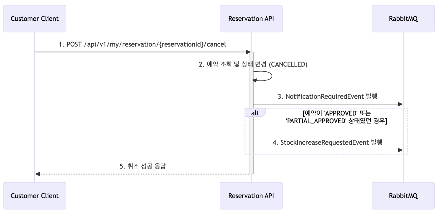 - 처리: 고객의 예약 취소 로직과 동일하며, 취소 주체가 점주임을 기록합니다. 이는 향후 운영 정책에 따라 환불 및 수수료 처리 로직과 연계될 수 있습니다.