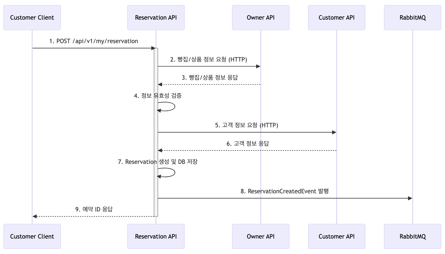 로부터 필요한 정보를 조회하고, 비동기 통신(RabbitMQ)으로 재고 관리, 알림 등 후속 처리를 다른 서비스에 위임하여 안정성과 확장성을 확보합니다.