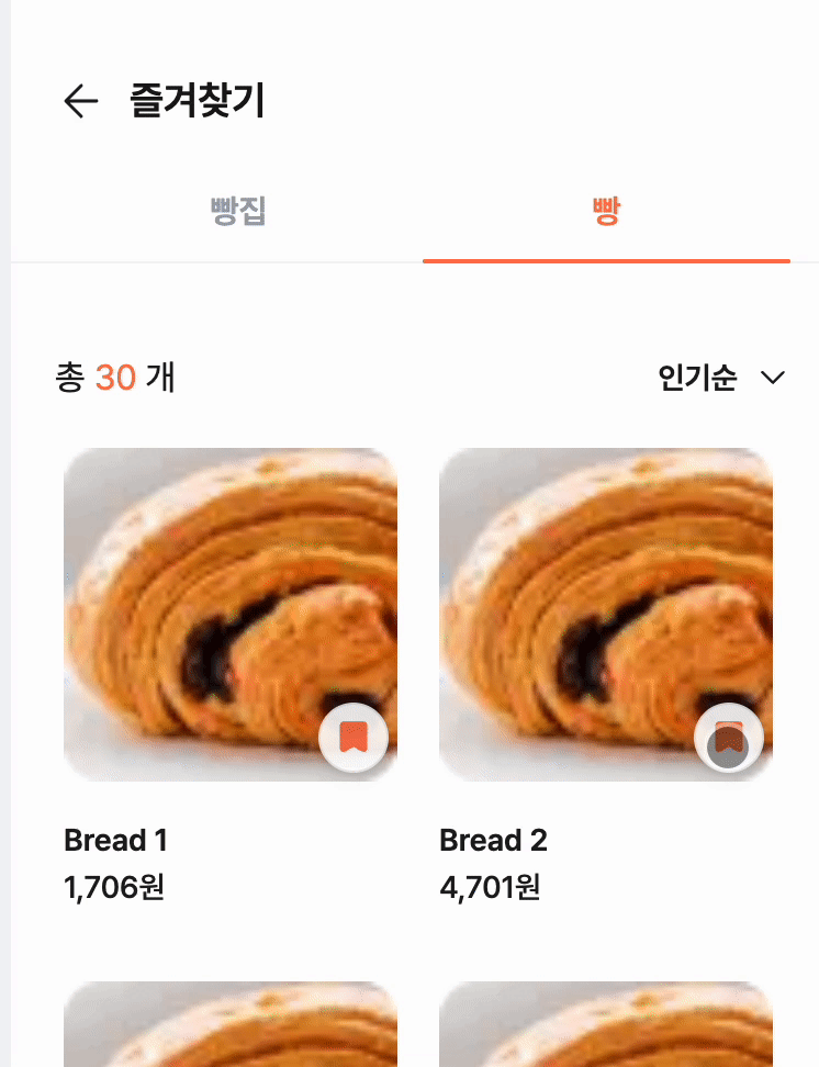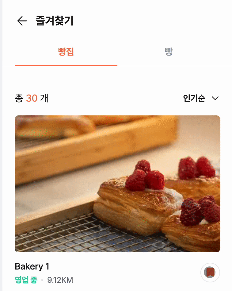 - λ§μ΄νμ΄μ§ λ΄ μ¦κ²¨μ°ΎκΈ° νμμ λ΄κ° μ μ₯ν λΉ΅ λ° λΉ΅μ§ λͺ©λ‘μ νλμ νμΈν μ μμ΄μ.