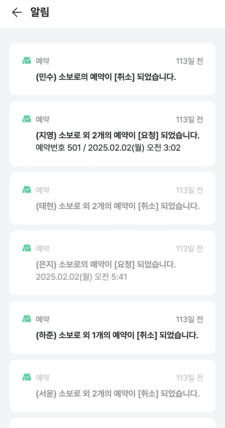 - κ³ κ° μμ½ μμ²/μ·¨μ/νμ μ λν μλ¦Όμ μ€μκ°μΌλ‘ λ°μμ.